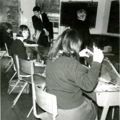 ![]() Ilona, Biba, Cathy, Clare, with Philip Neville in Classroom |